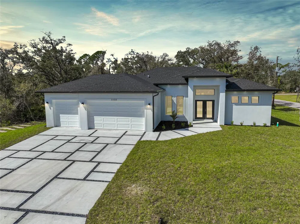 One or more photo(s) has been virtually staged. Welcome to your dream home in Port Charlotte, FL! This stunning new construction offers everything you need to live in comfort and style, with 3 bedrooms, 2 bathrooms, and a spacious 3-car garage. The open concept living space is perfect for both relaxing and entertaining, featuring intricate high ceilings that highlight the attention to detail throughout and French doors open to a private patio space, extending your living area outdoors. The dining area, just off the beautiful kitchen, is ideal for hosting family and friends, while the kitchen itself boasts expansive storage, stainless steel appliances, and elegant stone countertops. For those who need a dedicated space to work or unwind, a separate office/den awaits, offering both function and flexibility. The primary suite is a true retreat, with sliders that open to the patio space, a luxurious ensuite bathroom featuring a walk-in shower, dual sinks, and a walk-in closet. The split-bedroom floor plan ensures space and tranquility for everyone in the family, while the oversized lot, offering over a quarter acre, provides plenty of room for outdoor activities. IMPACT WINDOWS throughout the home provide added security and peace of mind, ensuring protection from the elements while letting in natural light. Experience the best of Florida living in Port Charlotte, where year-round sunshine, world-class fishing, and nearby beaches like Boca Grande and Englewood create the perfect coastal lifestyle. Enjoy outdoor recreation at Charlotte Harbor Preserve State Park, championship golf courses, and a variety of shopping and dining options. This home is more than just a place to live; it's a place to thrive. Don't miss the opportunity to make it yours! ¤ Please see 3D Tour and Video ¤