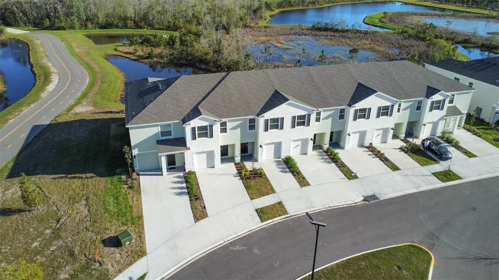 Brand new townhome for you. Just built. In new community of Angeline. Concrete walls from the ground up all the way to the roof. Well insulated. On conservation lot with a pond view. Community is close to major roads. Only about 40 minutes to Tampa International Airport. In the kitchen all stainless steel appliances. What's unusual for townhomes, there's a huge kitchen island, Ideal for having breakfast there. 3 bedrooms and 2 bathrooms upstairs. Third bathroom on the main floor. Attached 1 car garage and a great convenience for occupants is that there's a wide driveway to fit 2 cars. Community pool is being built, should be completed by mid summer of this year. In the community there's a new school open since August of 2023, The Angeline Academy of Innovation STEM (Science, Technology, Engineering and Mathematics) school is newly open, providing a school right within the neighborhood. Angeline is the home of a state-of-the-art global innovation district focused on life sciences. Make an appointment to see it and you'll love it. It may be the next place you will call Home.