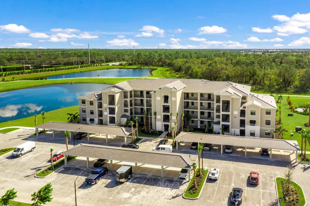 AVAILABLE JAN & APRIL 2026. WELCOME TO THE AMAZING LAKEWOOD NATIONAL GOLF CLUB! Comes with Golf Membership Transfer. Spectacular 3BR/2BA "Carolina Model" upper-floor (i.e., there is no one living above you!), high-ceiling, corner end-unit condominium (only two of its kind in each building!), which is the largest (approx. 1,500 gross sq. ft.) and most desirable condominium in the "Terrace Condominiums" at Lakewood National. Upon entering the condominium, you immediately appreciate the ten-foot ceilings and the open-concept floorplan of the full kitchen, dining room, and living room with southern exposure. The kitchen features all stainless-steel appliances and a large center island where you can create and enjoy your favorite culinary delights! Situated on the third floor with no one living above you, the living room, the primary suite, and the adjoining lanai are bathed in sunlight all day and reveal a breathtaking panoramic premium view of three tranquil lakes surrounding the 14th and 15th holes of the Piper Golf Course. The condominium has its own washer and dryer, and the rental also includes one reserved space under the building's covered parking structure. Amenities include a Grand Clubhouse with restaurant and bar, state of the art fitness center, resort style beach entry lagoon swimming pool with outdoor grille tiki bar and poolside cafe/service, a full-service spa, tennis courts, bocce ball and more! Golf/Membership transfer available, expenditure is required at the on-site Tiki Bar/Restaurant (Alcohol Excluded), tennis courts, pickleball, and much more! The Club has full-time, on-site trainers and professionals for golf, fitness, and racquet sports to help you reach your sports and fitness goals. Lakewood National is synonymous with luxury and is simply one of the best luxury golf communities in all of Florida! **HOA APPLICATION/TRANSFER FEE $600+tax