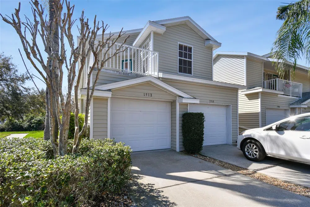 Beautiful condo with lake and conservation views now available in Pasco County along State Rd 54. Perfect location near the Suncoast for easy travel. Welcome to the GATED community of Lakes at Heron Cove. This immaculate end-unit 2 story condo is move in ready. Larger 1 car garage. Side entry is welcoming. Once inside, come upstairs to the heart of the home. This open floor plan offers large living room, dining space, and large kitchen with bat-wing island that provides additional seating. Tall ceilings. Ample counter tops and cabinet space. All appliances stay. Designated laundry room with cabinets for more storage. Split bedrooms. BEST FEATURES: Functional for all seasons, is the covered patio and the open patio. Community has dock for fishing, a pool, a cabana, a jacuzzi, and all exterior maintenance is included. A-rated schools, restaurants and entertainment, grocery and medical, all very close by.