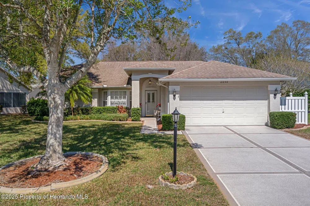 Welcome to your dream home in the sought-after 55+ gated community of Timber Pines, located in beautiful Spring Hill, Florida! This stunning 3-bedroom, 2-bathroom residence with a spacious 2-car garage offers incredible golf course views and is situated directly across from a T-Box, providing the perfect blend of leisure and lifestyle. Step inside to discover a bright and inviting 19x16 formal living room, ideal for hosting gatherings or relaxing in comfort. The adjacent 11x9 dining room provides ample space for memorable meals with family and friends. The generously sized kitchen is designed for the home chef, boasting abundant cabinet and countertop space, a convenient pass-through to the rear lanai, and a cozy 10x9 breakfast nook for casual dining. An expansive 17x15 family room offers additional living space, perfect for entertaining or unwinding with loved ones. The spacious master suite is a true retreat, featuring dual closets, private access to the lanai, and an en-suite bathroom complete with dual sinks and a beautifully tiled shower. Guests will appreciate their own privacy with two comfortably sized guest bedrooms, both featuring ample closet space, and a spacious guest bathroom with a tub/shower combination and a solar tube for enhanced natural lighting. Additional features of this delightful home include an indoor laundry room with a laundry tub and shelving, mature landscaping, screened gutters, and a stamped driveway for added curb appeal. Nestled in the serene Pine Ridge Village of Timber Pines, this award-winning community offers an active adult lifestyle like no other. Enjoy three 18-hole golf courses, a 9-hole pitch & putt, two clubhouses with community pools and hot tubs, and a newly remodeled Country Club featuring a lounge and restaurant. Additional amenities include two Pro Shops, a fitness center, billiard room, performing arts center, pickleball, tennis courts, a dog park, and over 100 clubs and activities to suit your interests. Don't miss out on this exceptional opportunity! Who do you know that's ready to book their private tour and make this gorgeous home their own? Call us today!