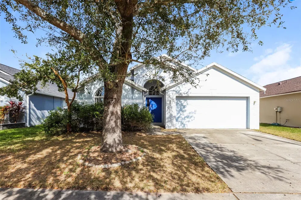 4 Bedroom one-story home, with a desirable floor plan. The living and dining combo are defined with nice columns and an arch. Following the large entry/foyer past the formal rooms you enter a open kitchen featuring wood cabinets, a center island with a counter for bar stools and a large eat-in space. It also features a built-in desk, Plant Shelves and a very large pantry. Open family room with high ceilings. The Screened Lanai is easily accessed by sliding door. Spacious Master Bedroom with large walk-in closet and a huge Master Bathroom featuring a whirlpool tub and separate walk-in shower, in addition to Double Sinks! The other 3 Bedrooms are good sizes and separate from the Master with a large hall bath that features double sinks.
