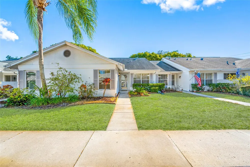 One or more photo(s) has been virtually staged. Welcome home to this beautifully maintained, maintenance-free 2-bedroom, 2-bath villa designed and built by Arthur Rutenberg, located in the desirable Edgewood of Gulf Trace community. As you enter the neighborhood, you’ll immediately appreciate the picturesque, tree-lined streets shaded by majestic old oak trees. Inside, the home feels fresh and inviting, featuring high vaulted ceilings, luxury wood-look flooring, and a neutral color palette throughout. The newly updated kitchen is truly stunning, offering an abundance of real wood cabinetry, granite countertops, soft-close drawers, and stainless-steel appliances. A cozy dinette area just off the kitchen provides the perfect spot for casual meals or morning coffee. At the rear of the home, an enclosed lanai with sliding screened acrylic windows offers a relaxing space to enjoy Florida living year-round. The desirable split-bedroom floor plan provides added privacy, with bedrooms located on opposite ends of the home. The spacious primary suite features a large walk-in closet and an en-suite bathroom with an oversized vanity and a private water closet for the shower area. The guest bedroom, located at the front of the home, is also generously sized and conveniently situated near the guest bathroom. Outside, you’ll enjoy your own assigned covered parking space, along with additional guest parking just steps from the front door. The lower monthly HOA fee covers your water, sewer, cable, internet, trash, lawn maintenance, exterior, roof, the community pool & spa, outdoor pest control and so much more! Ideally located, this home is just minutes from shopping, Gulf-front parks, golf courses, and tennis facilities. The stunning Gulf beaches are a short drive away, as are popular downtown destinations such as Tarpon Springs and New Port Richey.