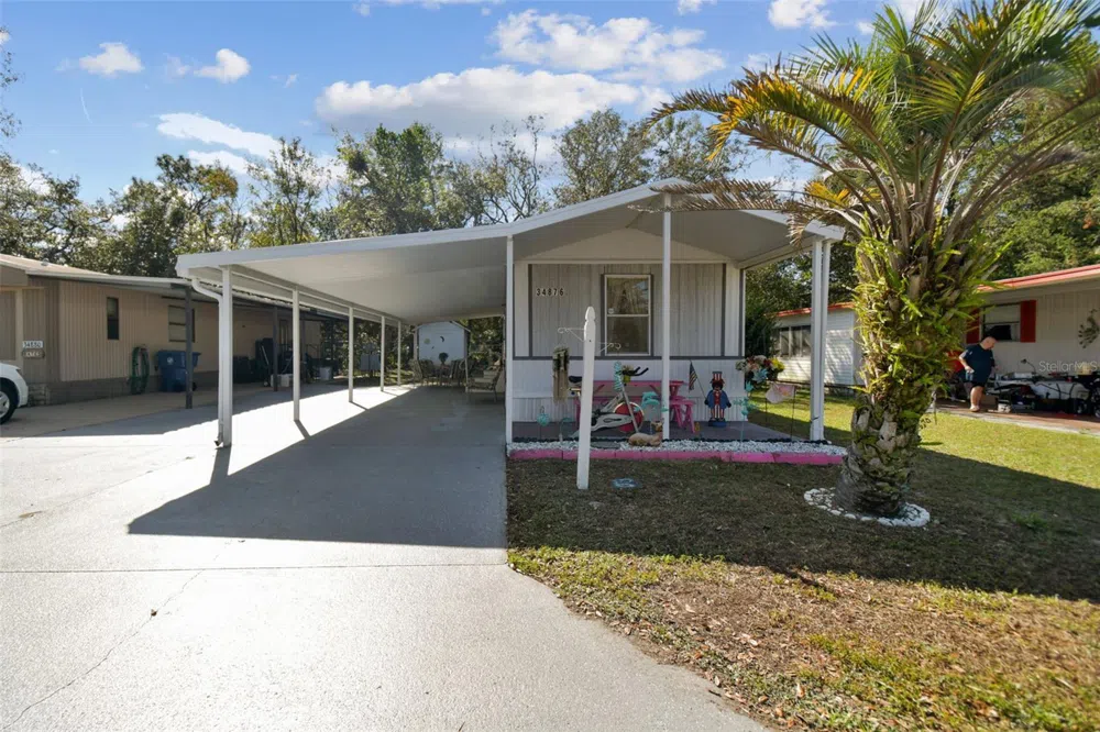You Own the Land! Say goodbye to lot rent and hello to easy living in the 55+ community of Fort Dade Mobile Home Park, located just north of Dade City. This community of approximately 136 homes offers a perfect blend of winter retreat residents and year-round residents. This charming 2 bedroom 2 bath home nestled in this community, is designed with comfort and functionality in mind. The open floor plan connects the living room and kitchen, creating an inviting space for relaxing or entertaining. The split-bedroom layout ensures privacy, with a bedroom and bathroom conveniently located at each end of the home. The home comes fully furnished for your convenience and a new roof in 2021 adds a peace of mind. There are parks in the park, for dog walks or catching up with neighbors. Step outside and enjoy the 12' x 36' carport, an ideal spot for cookouts, relaxing with neighbors, or soaking up Florida's famous winter sunshine. Don't delay, schedule your showing today.
