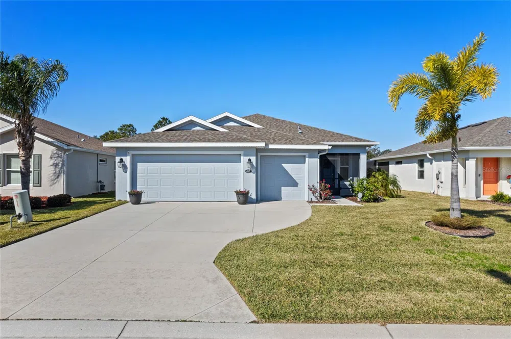 Discover this beautiful golf course home with breathtaking private views of the fairway! **BE SURE TO CHECK OUT THE 3D VIDEO** Built in 2020, LIKE NEW condition that is a ENERGY-EFFICIENT home offers modern design and low-maintenance living with a low HOA fee that includes internet, Wi-Fi, cable, and lawn care. Step inside to a bright, open-layout designed for entertaining. The chef’s kitchen features QUARTZ countertops, 36” upper cabinets, and PULL-OUT DRAWERS for effortless storage. If that’s not enough you will appreciate the OVERSIZED PANTRY and inside laundry that is so roomy for even more flexibility.The home also comes with a whole house water softener. The spacious owner’s suite easily fits a king-size bed and offers his-and-her closets plus a luxurious en-suite bathroom with dual sinks, quartz countertops, a private water closet, and a sleek, DOOR-LESS STEP IN SHOWER. A MURPHY BED in the third bedroom provides flexibility for guests or a home office. Enjoy stunning sunsets from your screened lanai, with unobstructed golf course views stretching as far as the eye can see! The Award-winning Arlington Ridge, a 55 plus community, is breathtaking just driving in with its beautiful waterfalls, lush landscaping and golf course on either side that flows throughout the property! It offers a resort style atmosphere with an 18-hole champion golf course, pickleball, tennis, bocce ball, lap pool, community pool (temperature control for year-round enjoyment) and beach area, hot tub, fitness center, fantastic restaurant, and even a movie theater, and coffee shop! An array of crafts, cards and planned events! All designed for today’s generation of youthful, energetic adults who are ready to pursue living the life they have waited their whole life for! Just minutes away from major hospitals and shopping. Easy access to the parks and airport. Don’t miss this opportunity for golf course living at its finest! Call today, you will be glad you did!