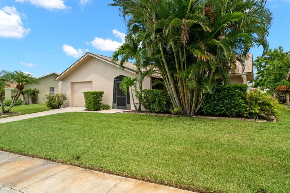 One or more photo(s) has been virtually staged. This well-maintained, move-in ready property is located in the sought after 55+ community of Lakes Unit I. It has an attractive curb appeal and sits on a 67x100 lot in a NON-flood zone. It offers a bright, spacious plan that includes the following: screened front porch, entry door with side light, welcoming foyer, large living room, casual dining area, galley kitchen with closet pantry, master bedroom with private bath & double closets (1 walk-in), guest bedroom, hall bath, enclosed Florida Room with wall to wall windows, plus an oversized garage with washer & dryer. The abundant indoor living spaces with central kitchen make this home great for entertaining. Enjoy your morning coffee and evening glass of wine from your screened porch or rear Florida Room. Home also features the following updates: KITCHEN: re-painted cabinets with hardware, 33" stainless sink, faucet, and GE appliances, MASTER BATH: vanity, faucet, mirror, and toilet, HALL BATH: vanity, faucet, mirror, toilet and storage cabinet, INTERIOR: ceramic tile & luxury vinyl flooring, 4 & 1/2" baseboards, 6-panel interior doors with hardware, solid wood front door with tempered glass, window blinds, light fixtures, ceiling fans, PLUS fresh paint, EXTERIOR: porch lights, shingle and flat roof (2020). It is conveniently located footsteps from the community clubhouse where you find a tropical heated pool with paved sun deck, shuffleboard courts, large social hall, game room with library, and activities calendar. Monthly HOA fees are reasonable and include all recreational facilities, lawn care, pest control, cable, internet, water, sewer, trash, PLUS underground utilities! The community is ideally located near grocery stores, restaurants, countless shopping hubs, and major thoroughfares to Tampa, St Pete, Clearwater, Gulfport, Dunedin, Safety Harbor, and the Gulf Beaches. This is a MUST SEE for buyers seeking an affordable move-in ready home with maintenance free living.