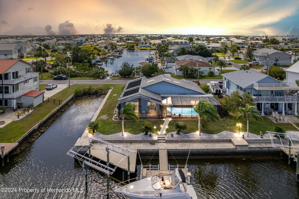 Under Contract Accepting Back Up Offers - HAVE YOU ALWAYS WANTED A Three Bedroom Two Bathroom Two Car Garage BEAUTIFUL TWO SIDED WATERFRONT SOLAR HEATED SCREENED POOL HOME ON A CANAL WITH QUICK GULF ACCESS? Vaulted Ceilings with Fireplace in the Great Room. Spacious Master Bedroom with Walk in Closet & it's own Private Bathroom with Walk in Shower. 2023, 2020 & 2018 Impact Resistant Sliding Glass Doors and Windows. $125 to $150 Electrical Bills. 2021 Electrical Panel Box. 2010 Three Dimensional Roof, 2018 HVAC. Covered 2016 10k Boat Lift with Trex Decking & Floating Trex 2018 Dock. Inlet on the Side.. Pavers in the Front, Around the Pool AND on the Seawall. Call Today for More Information.