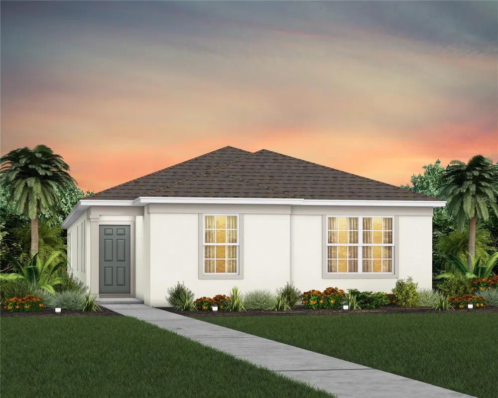 Under Construction. Everbe is a new master planned community where convenience and connections combine to create a new standard for home. Located in Orlando with quick access to 417 & 528, this lifestyle community will offer miles of pathways & trails, wi-fi-enabled green spaces, unique outdoor recreation areas, a fitness center, a clubhouse complex with resort pool, 2G internet, and a waterfront amenity and town center. Get excited for EverBe - everything home should ever be! Introducing the Beacon Bungalow by Pulte – where luxury meets convenience in a beautifully designed home. With 3 bedrooms and 2 bathrooms, this home offers a well-thought-out layout that prioritizes both comfort and style. The open-concept kitchen, café, and gathering room are filled with natural light, creating an airy, spacious atmosphere. A sliding glass door seamlessly extends the living space to the covered lanai, perfect for indoor-outdoor living. The kitchen is a showstopper, complete with sleek stainless steel Whirlpool appliances, including a microwave vented to the exterior and a refrigerator. Elkins White cabinetry, Blanco Maple Quartz countertops, and a decorative tile backsplash offer a sophisticated touch, while the stainless-steel single-bowl sink adds both beauty and functionality. Tucked at the back of the home for ultimate privacy, the owner’s suite is a luxurious retreat. The spa-inspired en suite features a glass-enclosed shower, a quartz-topped dual vanity, an enclosed toilet, and a linen closet, providing a serene escape. The two secondary bedrooms, located toward the front of the home, offer a peaceful atmosphere and are complemented by a well-appointed bathroom. Designer-curated finishes throughout elevate the home's appeal, including pendant pre-wire, chrome plumbing and bathroom lighting fixtures, and 2” faux wood blinds. Ceramic tile flooring throughout – except in the bedrooms, which are outfitted with plush, stain-resistant Shaw brand carpet – adds both elegance and comfort. Modern technology is incorporated as well, with a smart thermostat, doorbell camera, and additional LED downlights to ensure both beauty and connectivity. This home offers the perfect blend of luxury, modern design, and thoughtful functionality, creating an ideal living environment.