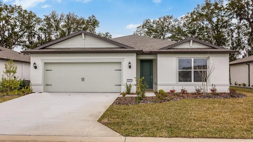 One or more photo(s) has been virtually staged. Move In Ready! Enjoy all the benefits of a new construction home in the serene setting of Ocala, FL's horse country, with an age-restricted, fully amenitized lifestyle at Del Webb Stone Creek. This is the active adult community you've been looking for, with amenities that include an 18-hole championship golf course, a full restaurant and bar, indoor and outdoor pools, sports courts, and so much more. Our sprawling amenities, clubs, and classes will fill your retirement days with activities to make new friends and memories. This popular Cresswind floor plan, with an open-concept home design, has all the upgraded finishes you've been looking for. The designer kitchen showcases a spacious center island with a large single-bowl sink, white cabinets, quartz countertops with a 3”x11” tiled backsplash, and Whirlpool stainless steel appliances including a range, microwave, and dishwasher. The bathrooms have matching white cabinets, quartz countertops, comfort height commodes, and dual sinks in the Owner's bath. There is 21”x21” tiled flooring in the main living areas, baths, and laundry room, and stain-resistant carpet in the bedrooms. This home also features a convenient laundry room, an extended, covered lanai, a large kitchen pantry, and a 2-car with a 4’ extension and a utility sink. Additional upgrades include 4 LED downlights and a tray ceiling in the gathering room, pendant prewiring in the kitchen, upgraded door hardware, and a Smart Home technology package with a video doorbell. Call or visit today and ask about our limited-time incentives and special financing offers!