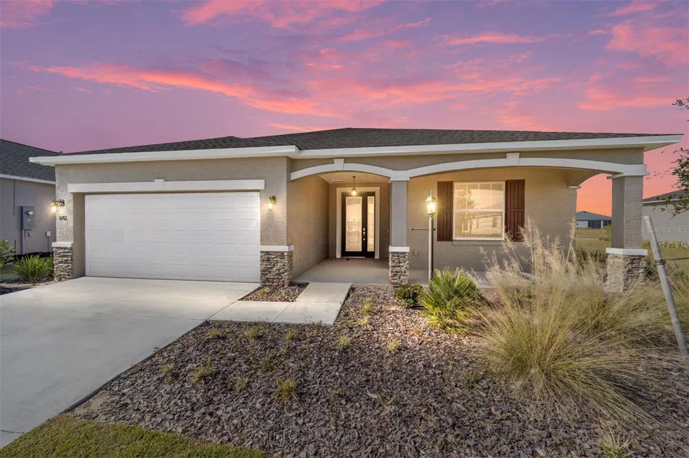 Welcome to this BRAND NEW CONSTRUCTION Ginger model that is everything you’ve been looking for and more in Weybourne Landing at On Top of the World. This home features 2 bedrooms, 2 bathrooms, a versatile flex room, and a 2 car garage. The home boasts luxury vinyl flooring throughout, a tray ceiling in the living area, and a private backyard that overlooks a dry retention pond. The gourmet kitchen features staggered cabinets with crown molding, an oversized island, quartz counter tops, elegant tile backsplash, a pantry, and stainless steel appliances. Just off the kitchen is the laundry room with upper and lower cabinets with quartz counters with a built in sink. The sliding glass doors lead to your screened lanai, perfect for relaxing and enjoying the outdoors. Inside the spacious master bedroom you will find two large windows that overlook the backyard, a walk-in closet, and an en suite bathroom. The en suite features a double vanity sink with quartz counters, a zero entry walk-in tiled shower with a bench, and a linen closet. The second bedroom and bathroom are thoughtfully designed for family and friends! On Top of the World is Ocala’s premier, gated, active 55+ community, loaded with amenities, including golf cart access to 2 shopping centers. Call for your showing today!