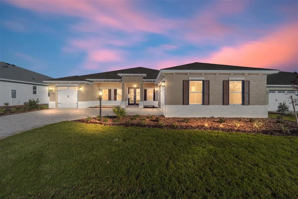 Come see this spacious NEW CONSTRUCTION Aberdeen home, located in the highly sought after Ashford neighborhood of Candler Hills. Luxury living is the best description for this 3-bedroom, 3 full bathrooms, a flex room, and a split 3 car garage! This home truly has space for all of your needs! This home features beautiful entry double doors, tray ceilings, tile flooring throughout, with an open floorplan, and a paver driveway and entry way. At the front of the home is a versatile flex room with beautiful windows which boasts natural lighting and also has glass French doors. The open concept great room/kitchen has tray ceilings and a beautiful view out the sliding glass doors. The gourmet kitchen features staggered cabinetry with crown molding, quartz countertops, large island, stainless steel appliances, wall oven/microwave and cooktop with a hood, elegant tile backsplash, and a pantry. The spacious master bedroom boasts double walk-in closets and an ensuite. The large master bathroom is equipped with a zero-entry tiled shower with a bench and his and her vanities with quartz countertops. This home also boasts a 2nd and 3rd bedroom along with a 2nd and 3rd bathroom, leaving ample amount of space for family and friends. The split plan positions the guest rooms on the other side of the home for additional privacy. Outdoor living is at its best with this large, enclosed lanai, perfect for relaxing and enjoying the outdoors. On Top of the World is Ocala's premier 55+ active adult community loaded with amenities, including golf cart access to 2 shopping centers. Don't wait to schedule your showing because this home will not last long! Call for your showing today!